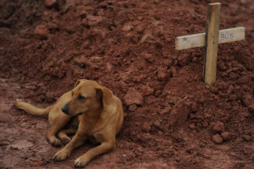 O cachorro Leão "guarda" o túmulo de sua dona, Cristina Maria Cesário Santana, morta nas chuvas que atingiram a região serrana do Rio de Janeiro nesta semana. Segundo a agência de notícias France Presse, que registrou a imagem do cachorro neste sábado (15) no cemitério de Teresópolis, o animal está há dois dias no local onde sua dona foi enterrada.